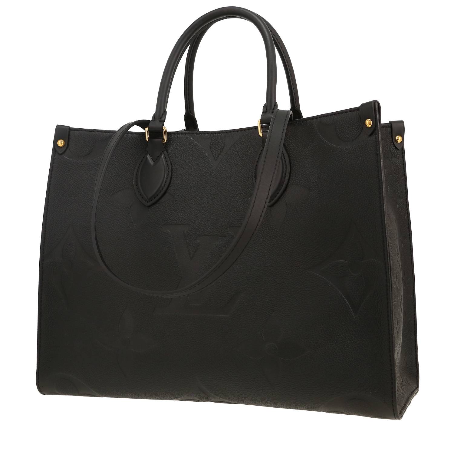 Sublime sac cabas Louis Vuitton Onthego moyen modèle en cuir monogram empreinte noir, garniture en métal doré, double poignée arrondie en cuir noir, double anse en cuir noir permettant un porté main ou épaule.