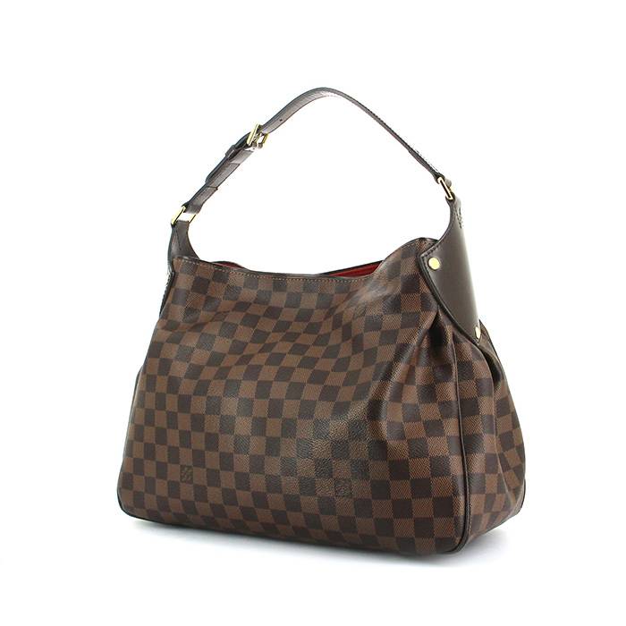 Sac porté épaule Louis Vuitton en toile damier ébène et cuir marron Ref Collector Square : 32 95 33