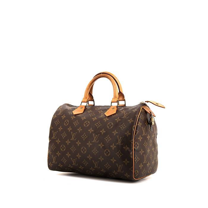 Sac à main Louis Vuitton Speedy 30 en toile monogram marron et cuir naturel Ref Collector Square : 35 74 27