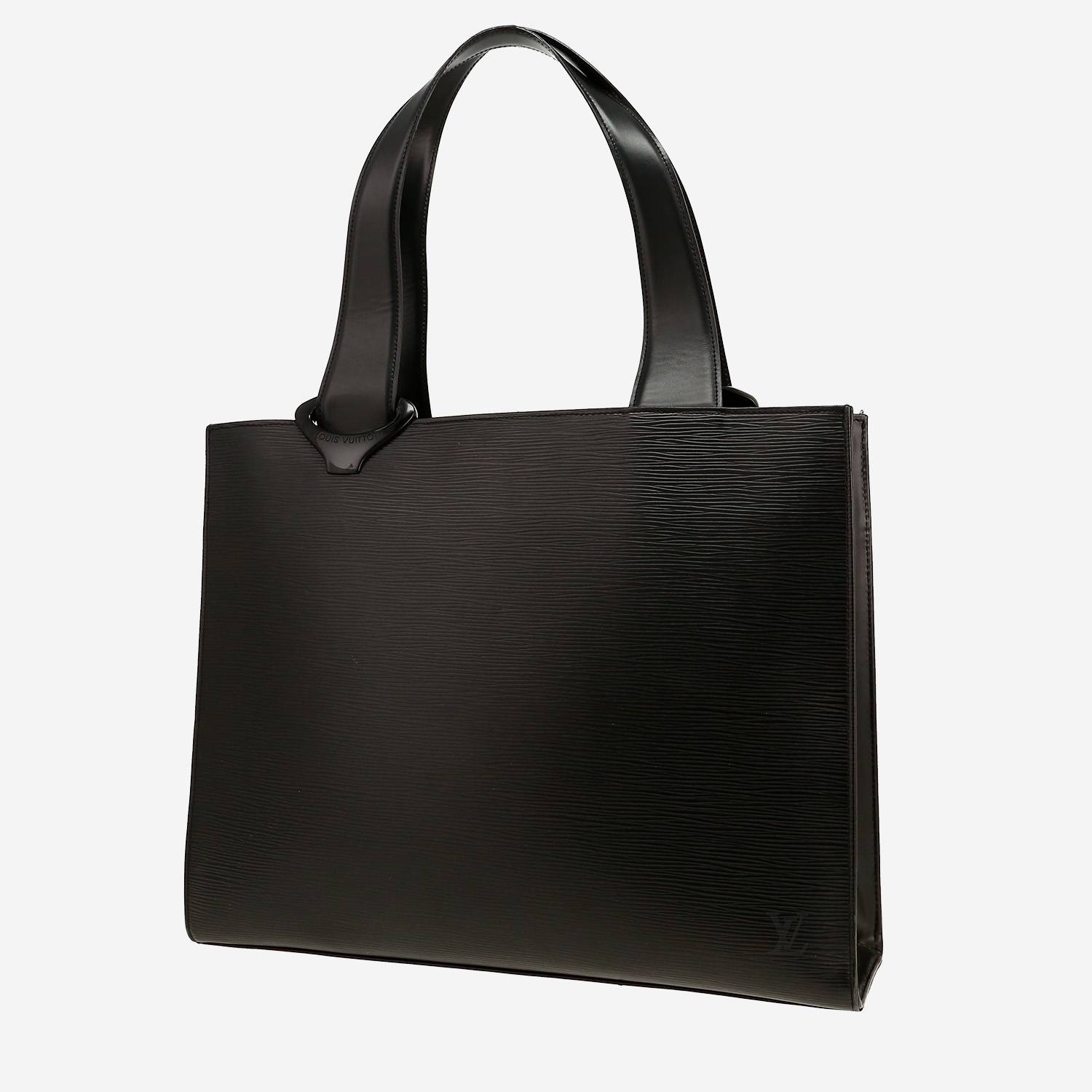 Pratique sac à main Louis Vuitton Verseau en cuir épi noir, garniture en métal doré, double anse en cuir noir permettant un porté main ou épaule.