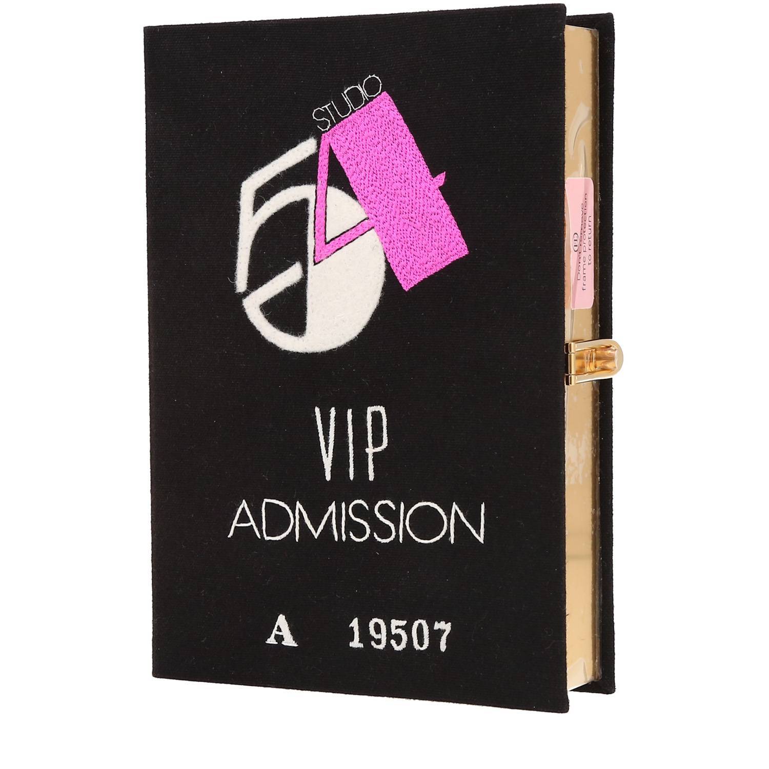 Sac bandoulière Olympia Le-Tan Studio 54 Vip Admission A19507 en toile noire Ref Collector Square : 40 31 01