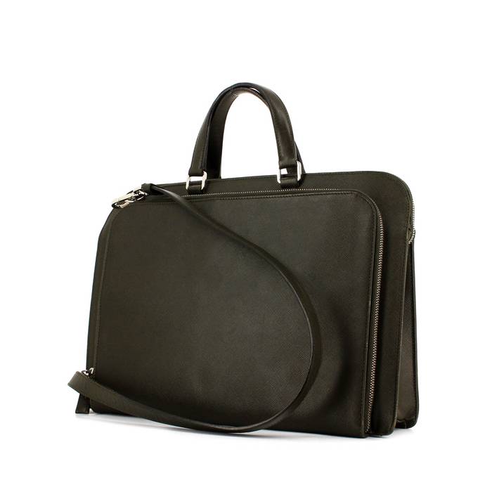 Porte-documents Prada en cuir vert-kaki Ref Collector Square : 32 12 54