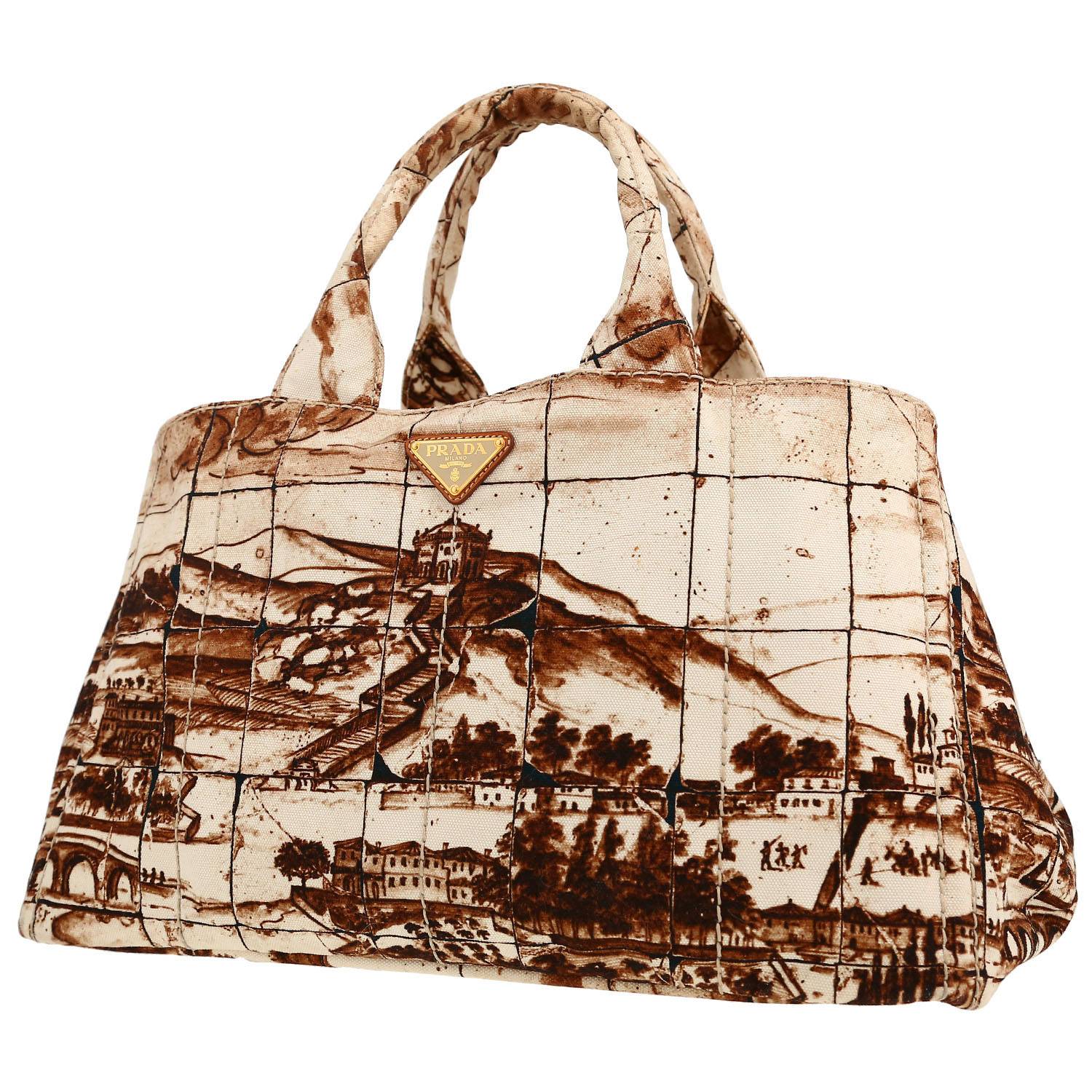 Sac à main Prada en toile beige et marron Ref Collector Square : 41 86 70