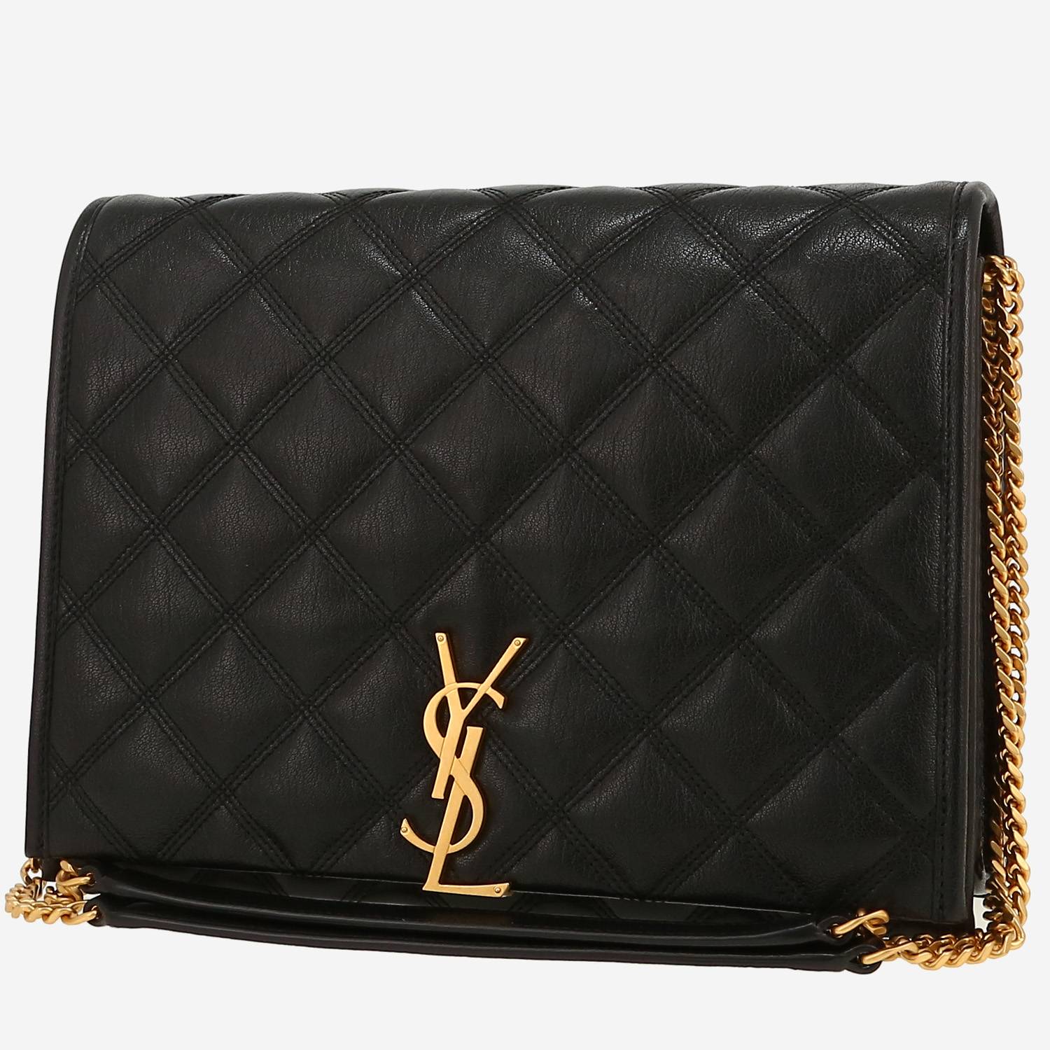 Magnifique sac à main Saint Laurent Becky en cuir matelassé noir, garniture en métal doré, une anse-chaine transformable en métal doré permettant un porté main ou épaule ou bandoulière.