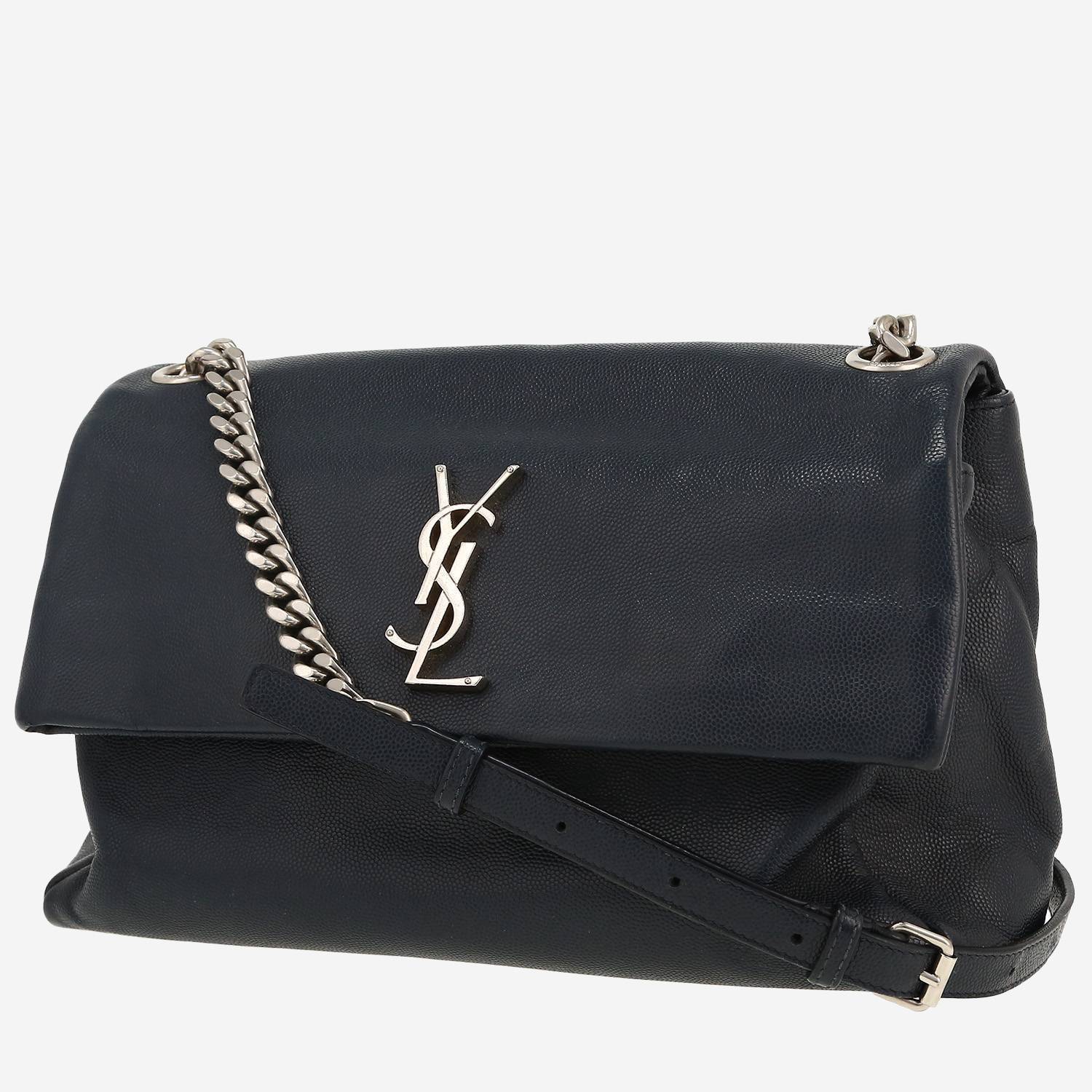 Sac bandoulière Saint Laurent West Hollywood en cuir grainé bleu, garniture en métal argenté, une anse bandoulière en cuir bleu-foncé permettant un porté épaule ou bandoulière.