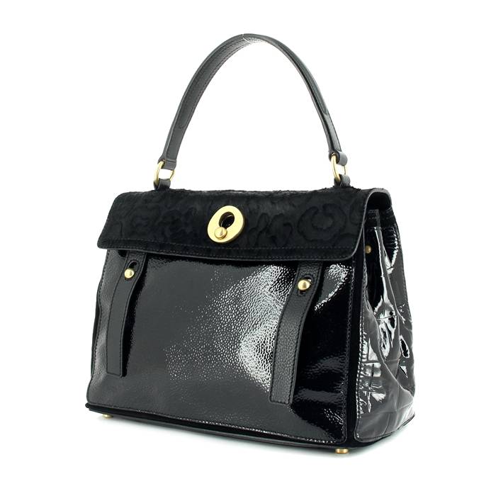 Yves Saint-Laurent Muse Two moyen modèle en cuir vernis et poulain noir Ref Collector Square : 25 37 09